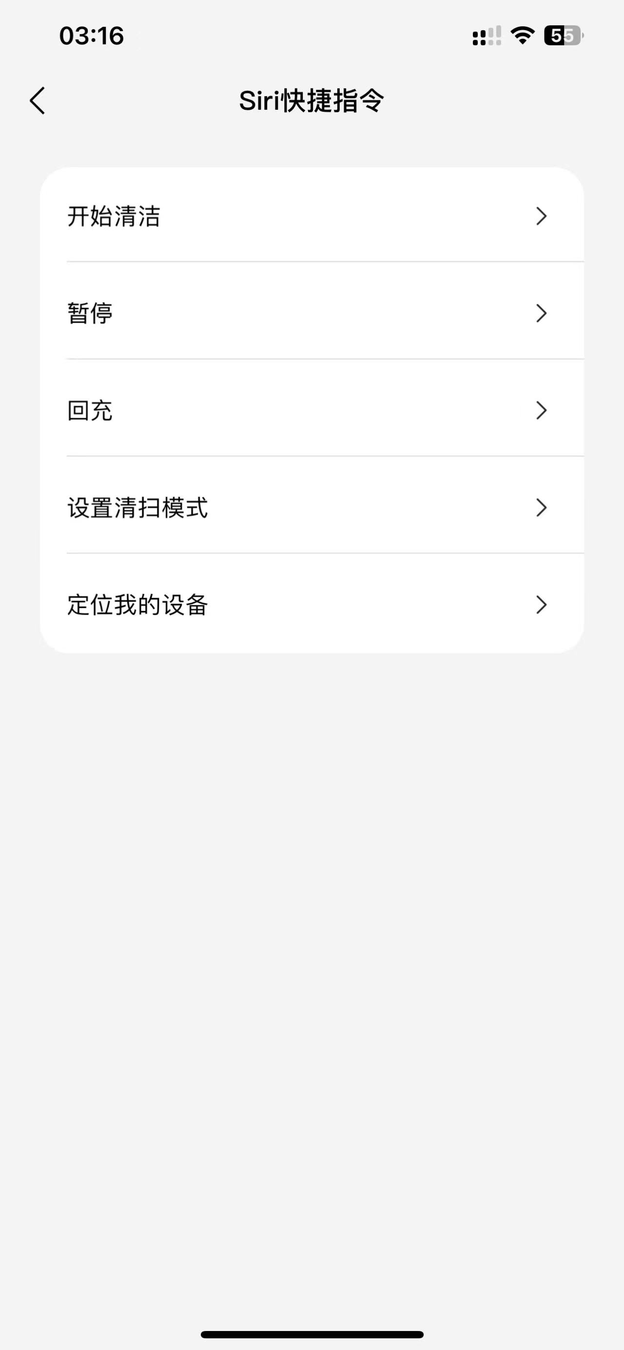 虽然Dreame 的app也有接入到其他平台的设置,但是接入其他平台后仅能执行部分功能,且对使用的手机是有限制的,如下图所示,Dreame app自带的接入Siri是通过苹果手机的快捷指令来实现的,这种方式只能让进行快捷指令设置的手机进行语音控制,没有设置的手机是无法控制的,且能设置的语音快捷指令功能有限,不能进行某个房间的指定打扫。