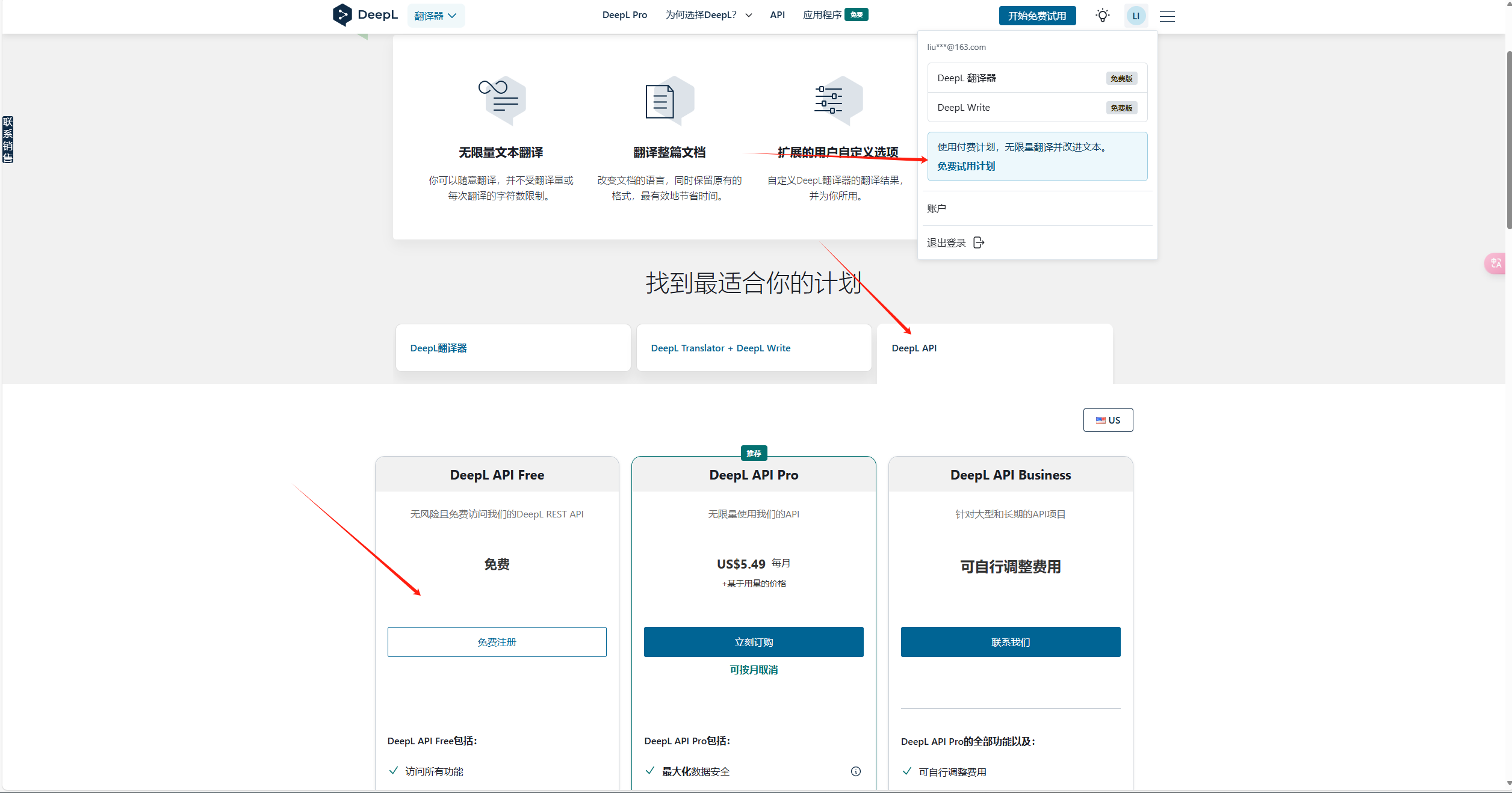 登录后--点击你的头像--选择使用付费计划--点击deepl api--选择Deepl APi Free--需要绑定信用卡 没法绑定的朋友请移步某宝搜索 Deepl api